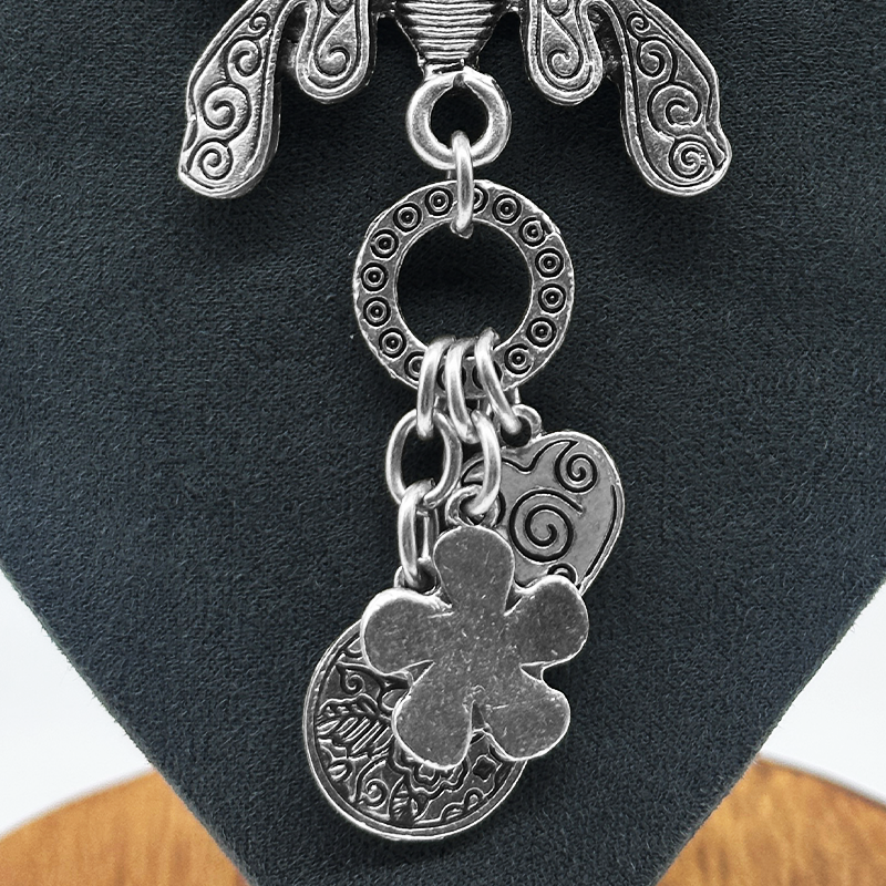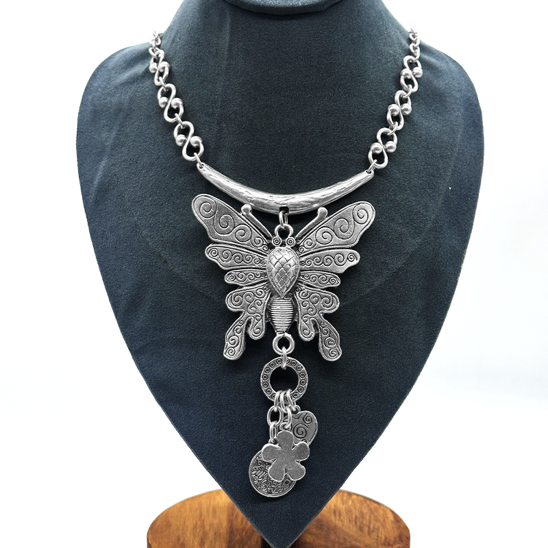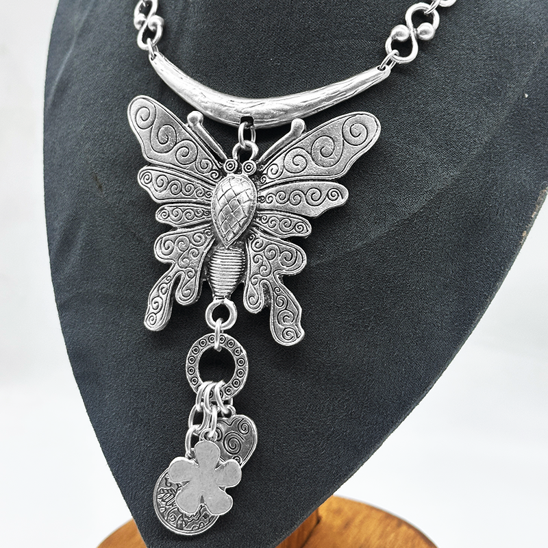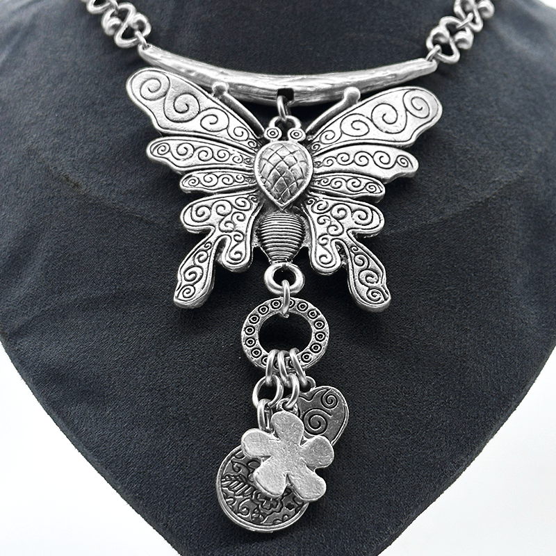 El dije de mariposa mide10 cm de largo y 7.5 cm de ancho