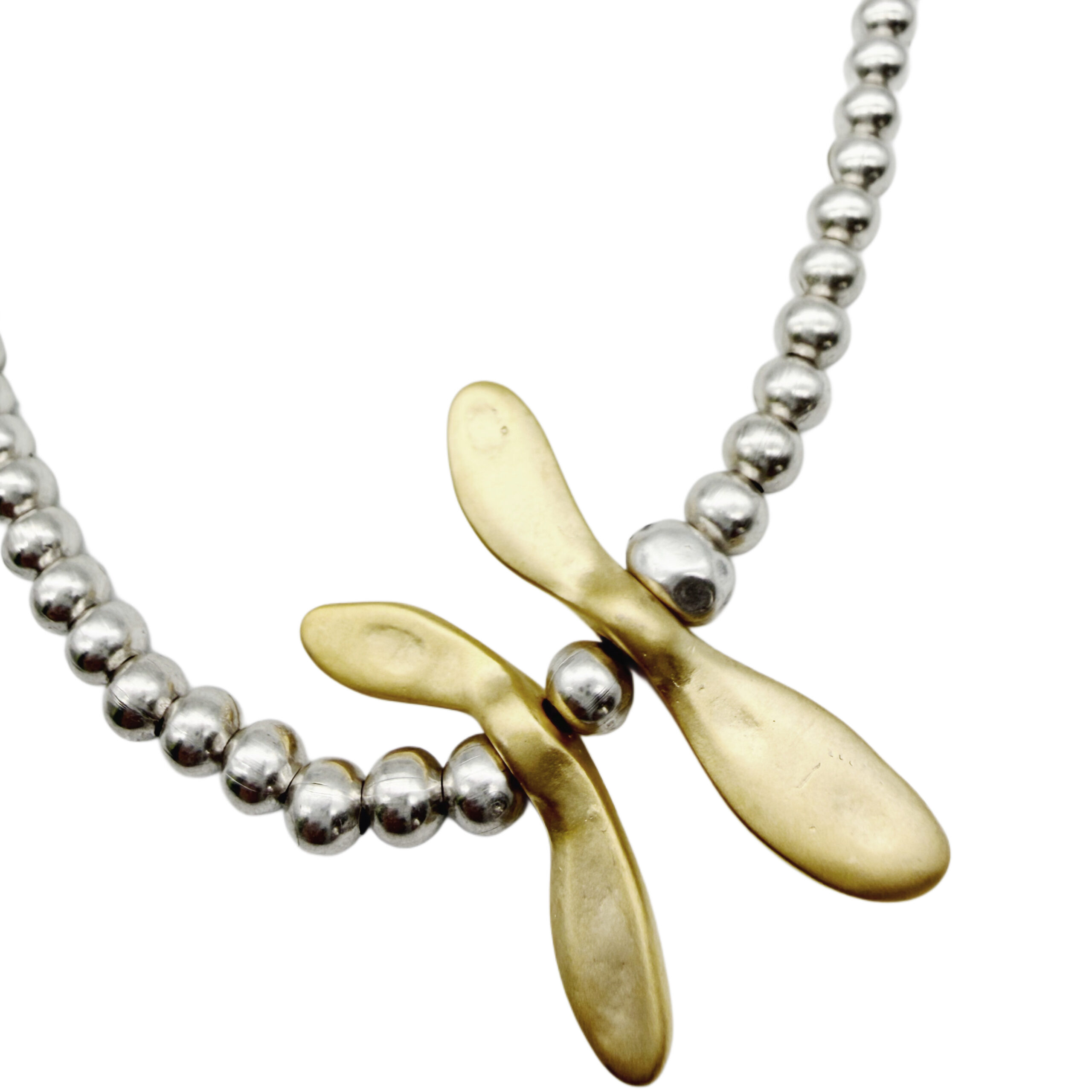 Collar corto de bolas plateadas con libelula Silver and Gold