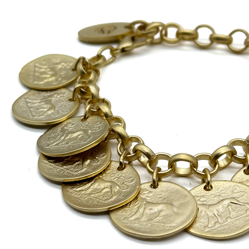Pulsera de inspiración romana con monedas de la línea Gold Matte de Le Bijouterie